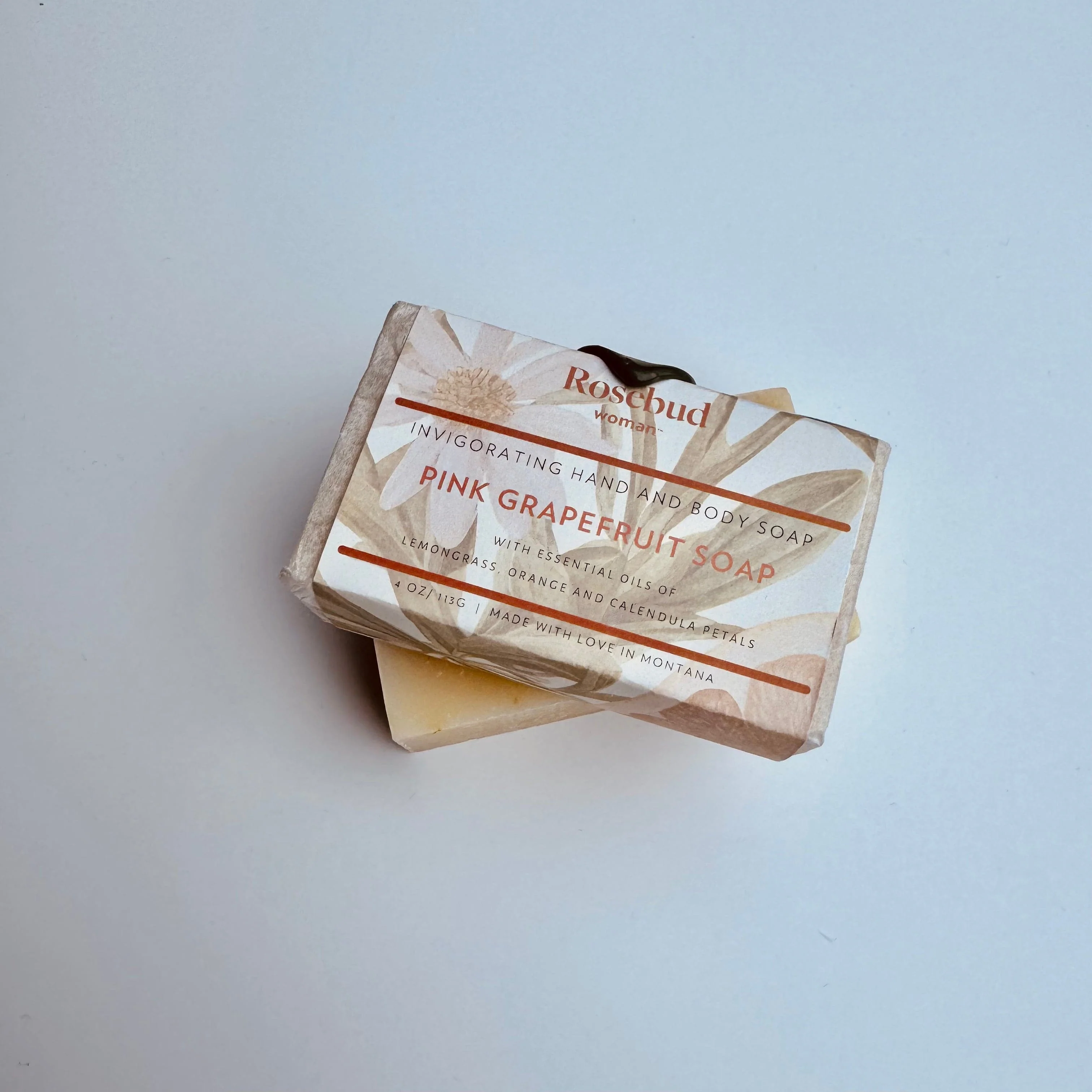 Our gorgeous pink grapefruit contains an invigorating blend of essential oils of : pink grapefruit, lemongrass and orange. This delicate and citrusy soap features a blend of skin nourishing oils including: sunflower, coconut, palm and safflower oils. The creamy base is then beautifully blended with calendula petals, and a hint of rosemary for the perfect bar of soap. Great for daily use on your hands and body.Â